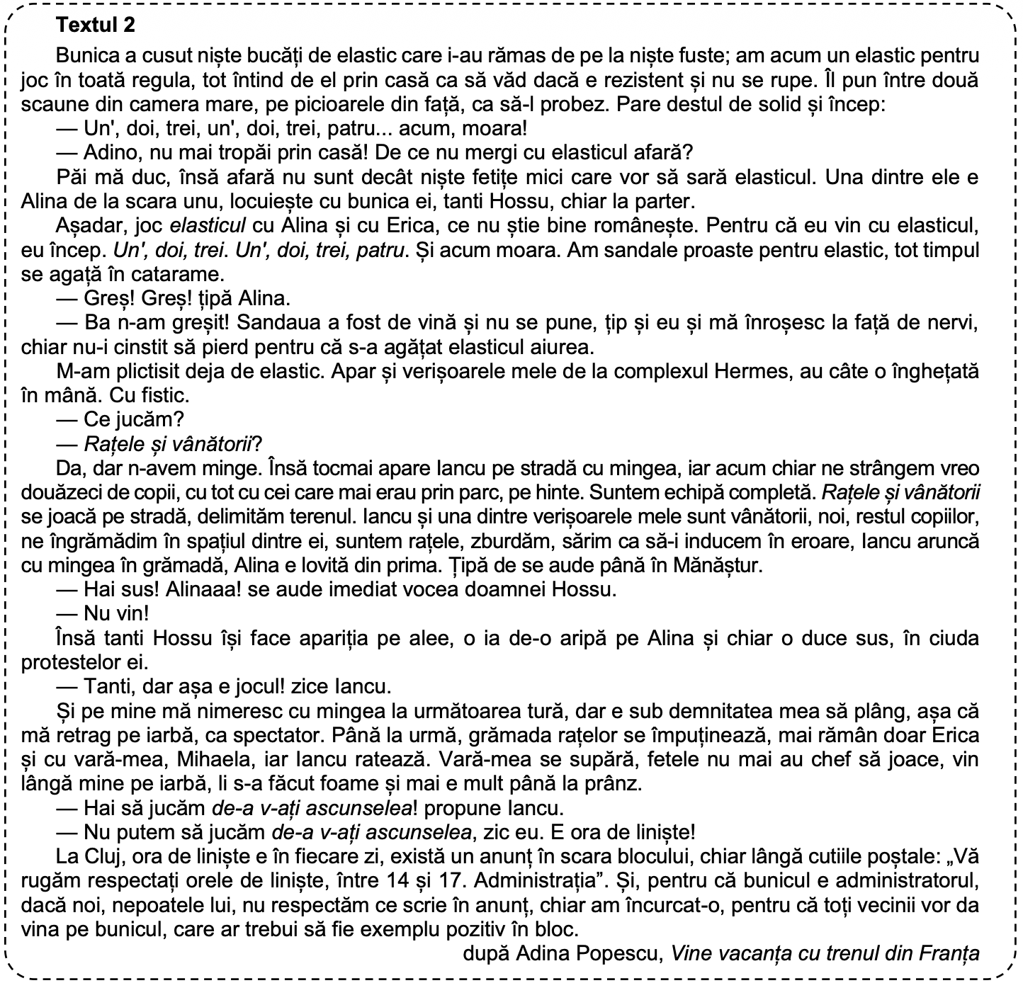 Notează, din textul 2, două cuvinte sau grupuri de cuvinte care aparțin câmpului lexico-semantic al jocului.