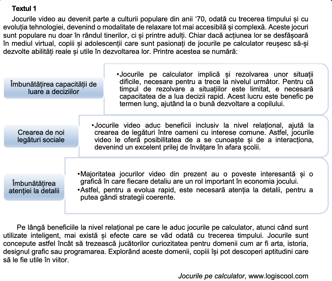 Încercuiește litera corespunzătoare răspunsului corect, valorificând informațiile din textul 1.