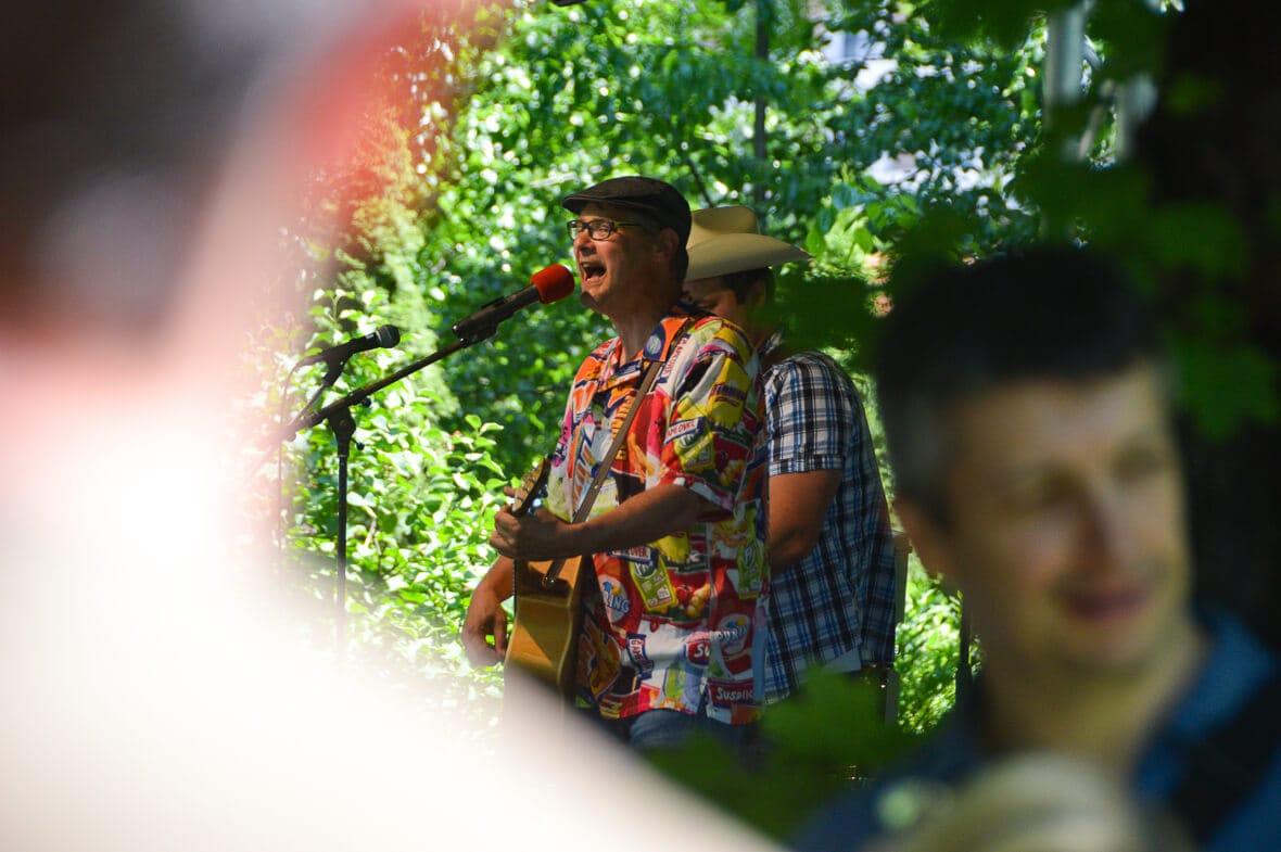 Nagyszínpaddal és a rajta zenélő Iszkiri zenekarral.