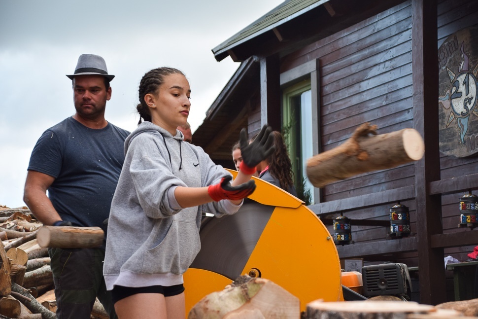 A lányoknak mára extrameló is jut, farakás van, hiszen besegítenek a ház tulajának, aki támogatása jeléül kedvezményesen bocsátotta rendelkezésükre a szállást. Van, aki inkább a további futóköröket választja, de az ellenkezője is: „jöhet a fa, csak többet ne fussunk”, hallom.