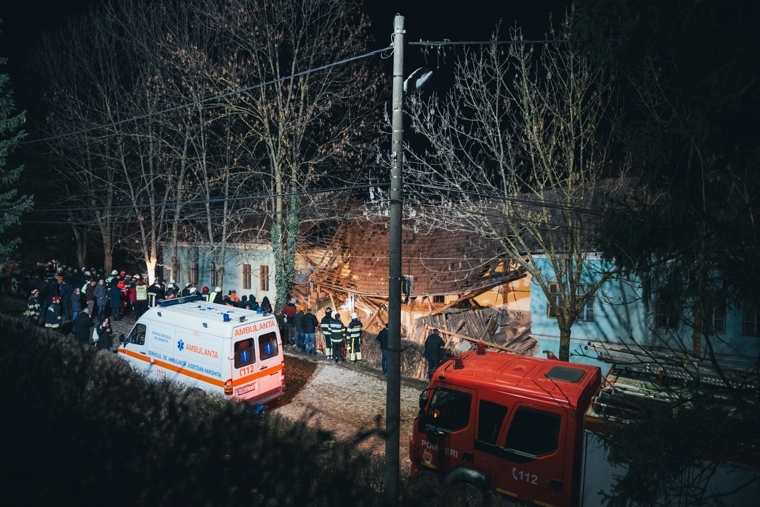 17 óra 2 perc: Voltak bent a szobában, amikor összeomlott a bentlakás, talán a romok alatt is vannak – mondta egy szerencsésen kijutott bentlakó a helyszínen tartózkodó kollégánknak, aki jelenti: a székelyudvarhelyi hivatalos tűzoltóság és a mentőszolgálat több egysége is megérkezett a helyszínre, és a bögözi önkéntes tűzoltók is. „Kettőt megtaláltak, ők élnek, de eszméletlenek, kettőt továbbra is keresnek” – állította egy bentlakó.