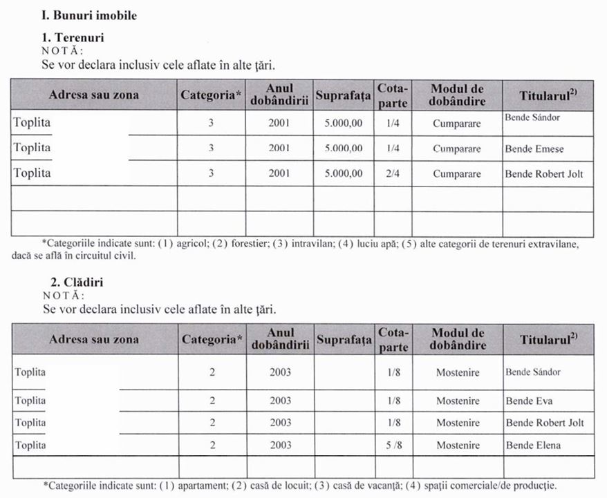 Ugyanitt az is kiderül, hogy Bende nem tudja helyesen kitölteni vagyonnyilatkozatát (nem ő az egyetlen, mint a Transtelexes kollégák kiderítették). Mert úgy néz ki, mintha három darab félhektáros területben lenne része, és négy darab házban lenne társtulajdonos különféle emberekkel.