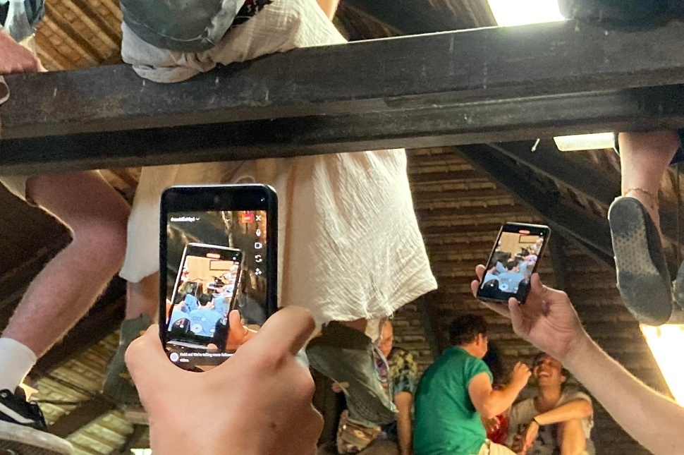 De kicsit visszakanyarodva péntekre, éjszaka futótűzként terjedt a hír, hogy a 4-es számú mosdóban háromkor koncert lesz, majd pár perc múlva a pontosítás is, miszerint egy másikban lesz, fél órával korábban. Időben odaértem, de már csak másokat segíthettem föl a gerendákra, ugyanis engem a biztonsági őr túlsúlyosnak talált. Akiknek nem jutott hely a magaslatokban, föltalálták magukat, a telefonokat láncként kötötték össze és kivetítőnek használták, hogy a kint rekedtek is élvezhessék Csoki&Hipó országszerte világhírű gerillakoncertjét.