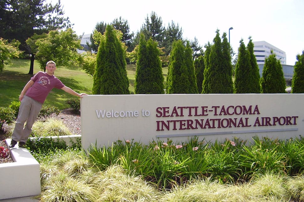 Én kölcsönből repültem Amerikába, piszok drága volt a légi élmény! Bukarest, Párizs érintésével érkeztünk meg Seattle-be. A drága utat a repülő fedélzetén található italkészlet elfogyasztásával kívántuk kompenzálni, ha nem szégyelltük volna. Annyi időt tartott az utazás, mint kicsi koromban a busszal Budapestre menni.