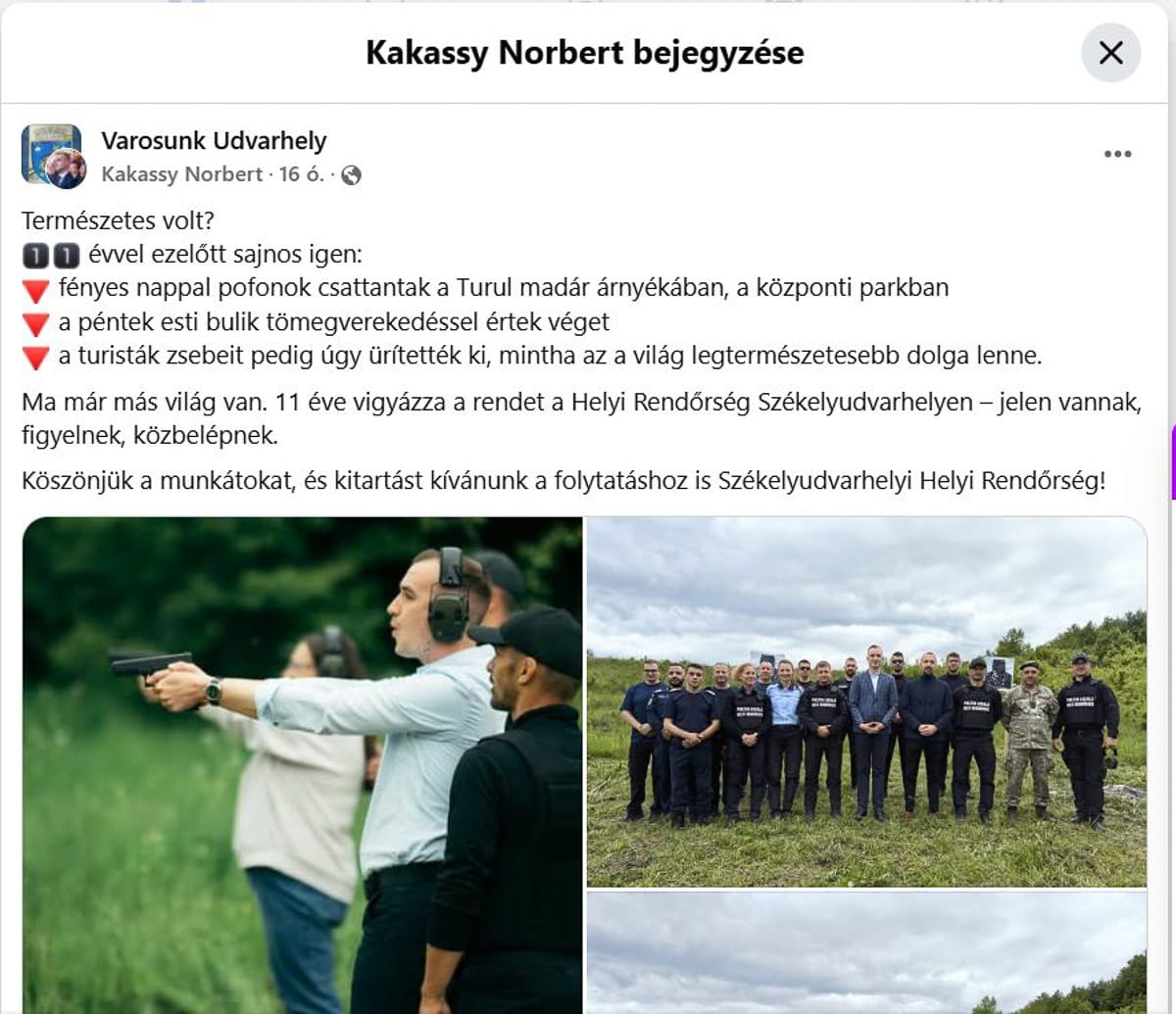 Múlt héten jelezték többen is, kollégáim és ismerőseim, hogy Facebookos bejegyzésben dicsőíti Kakassy Norbert helyi tanácsos a Helyi Rendőrséget, és fotók is vannak a bejegyzésekhez csatolva, amelyen Kakassy a helyi rendőrség igazgatójának, László Szabolcsnak az irányítása alatt pisztollyal célba lő.