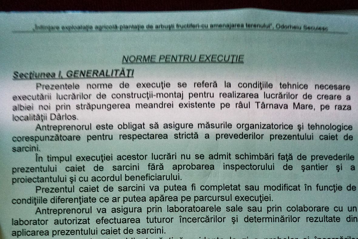 Ez a „Kájét dé szárcsiny”, olvassuk benne már az első mondatban, hogy új medret akarnak a Küküllőnek, a meanderek áttörésével, egy Szeben megyei faluban. Szerencse, hogy a dokumentum fejlécében nem felejtették el kicserélni, hogy a ribizlibányának a dokumentációja ez.