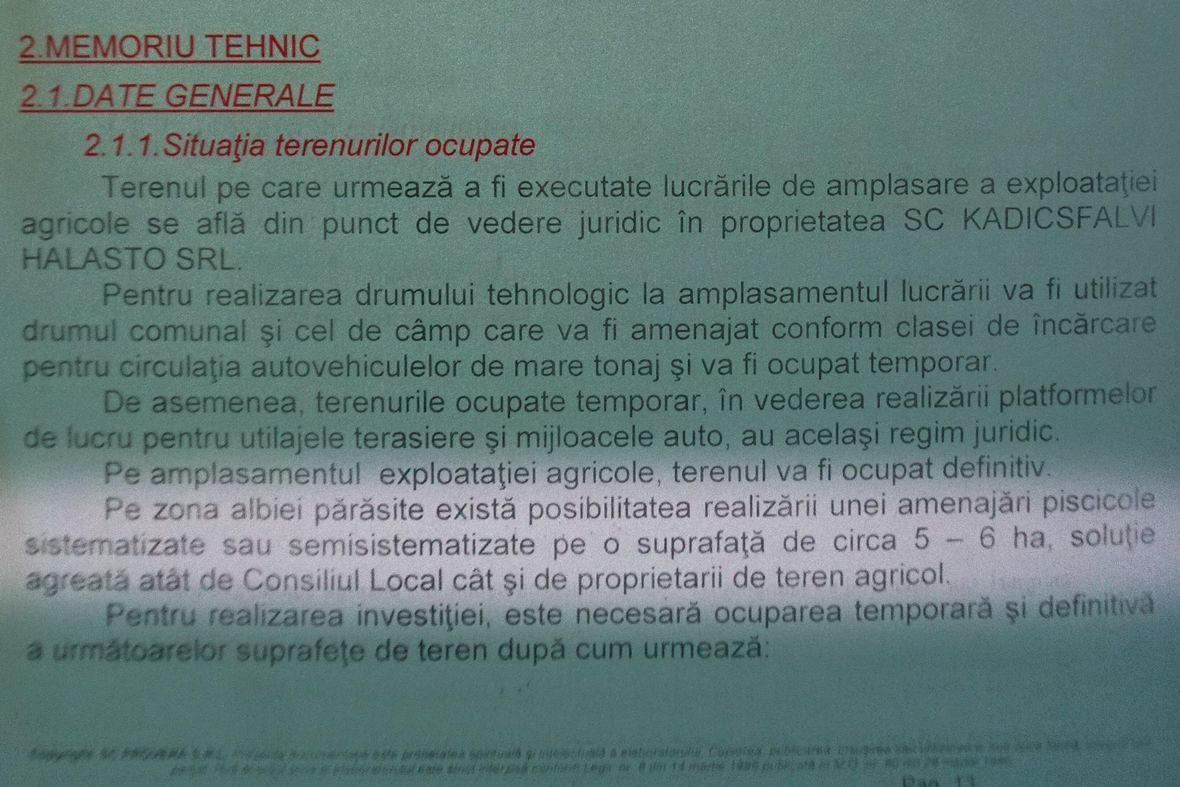 „Necesitate și oportunitate.” Ejsze itt lesznek lefektetve az opportunizmus elméleti alapjai. Az első mondat: „A befektetés célja egy mezőgazdasági exploatáció létrehozása, területek rendezése által, a zóna technikai és esztétikai problémáinak elmélyítésével és komplex megoldásával”. Bocsánatot kérek, hogy ilyen magyartalan szavakat használok, mint a „mezőgazdasági exploatáció”, de nem tudom, hogyan fordítsam magyarra, mezőgazdasági kitermelésnek, vagy mezőgazdasági kizsákmányolásnak. Mindegy, mindkettő híven tükrözi a földműveléshez való hozzáállásukat. De legalább meg fogják oldani a zóna esztétikai problémáját. Care este.