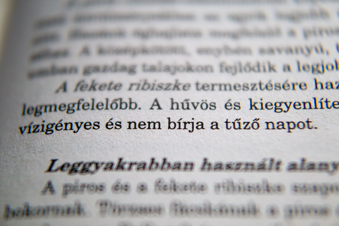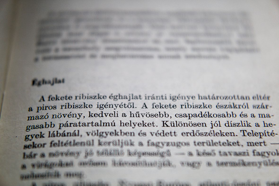 Tizenvalahány könyvünk van, amiben a feketeribizliről írnak, mindenikben ugyanaz áll. Amint tanulmányozgatom a könyvekben a ribizli igényeit, az asszony rámkérdez: írja ott, hogy kell hozzá egy bánya?