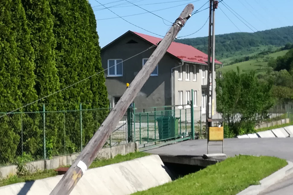 Kidőlt a pózna, leszakadtak a vezetékek, nincs áram a településen.