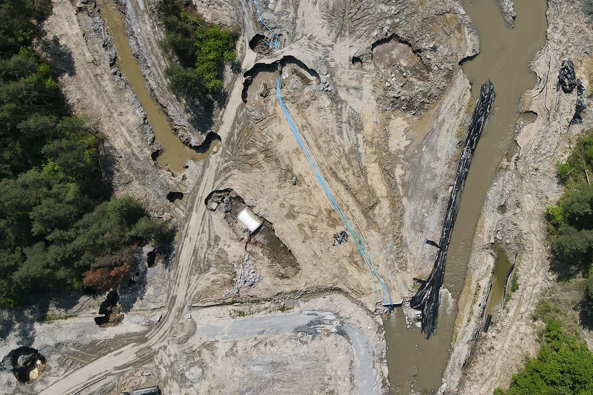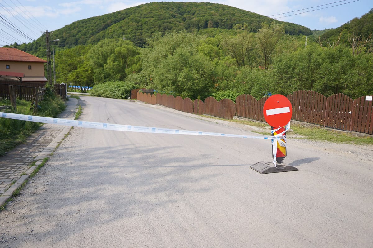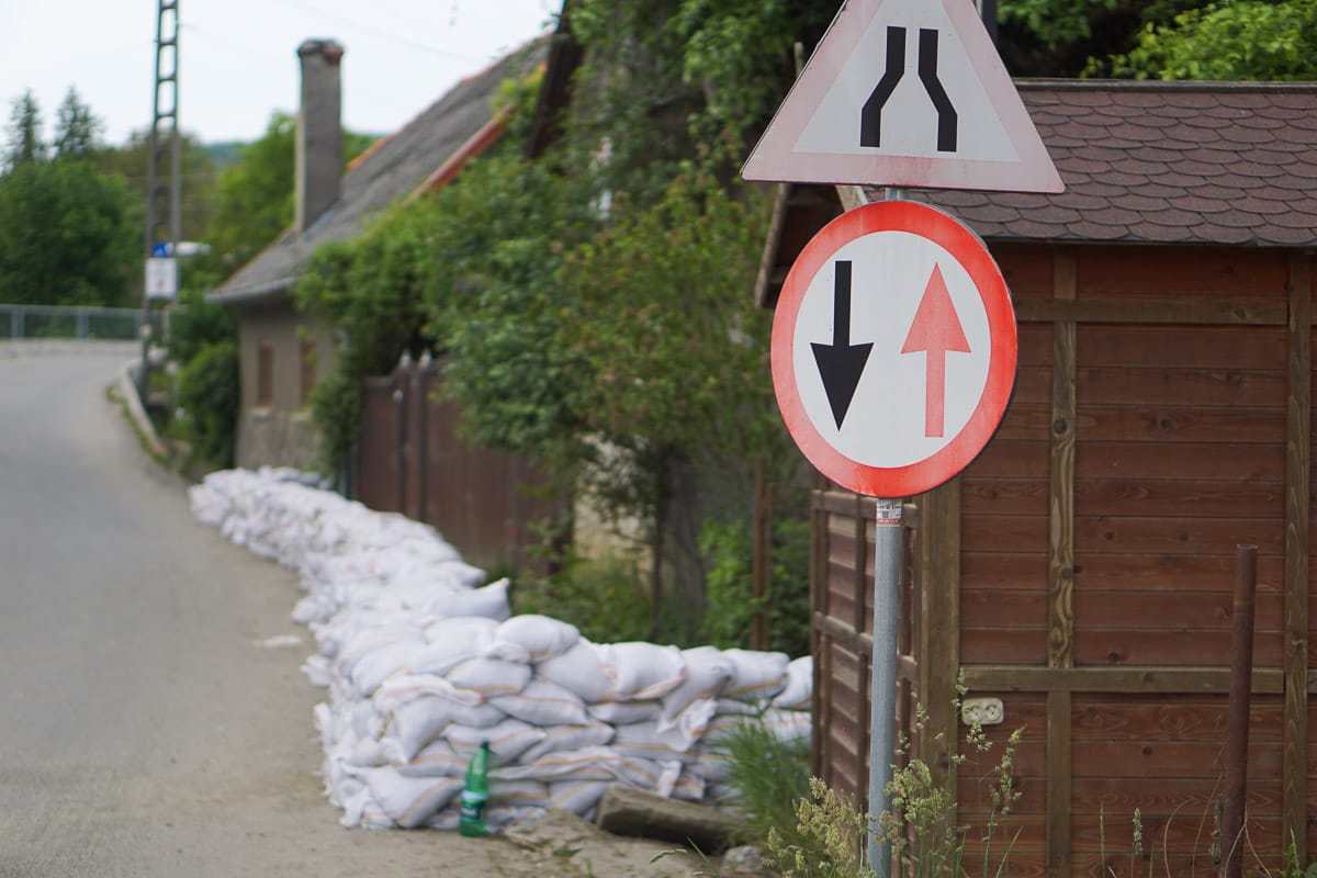 Az út szélén hol homokzsákokkal, hol hordozható fémszerkezettel gátakat építettek, hogy ha véletlenül beomlik a bánya teteje, és egy vízhullám csap ki onnan, akkor ne bántsa annyira a házakat.