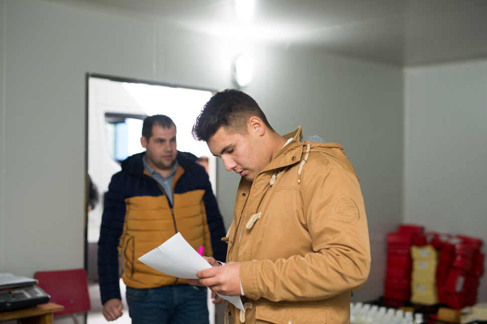 Fekete Szabolcs: Nekem minden reggelem a raktárban kezdődik. Kipakoljuk az árut, kirakjuk külön ládákba, attól függően, hogy melyik üzletbe mennek, hogy ne később kelljen válogatni, melyik áru hová kerül. Ezt Botival ketten szoktuk, előttünk van a táblázat, hogy aznap miből mennyi kell, hogy menjen.