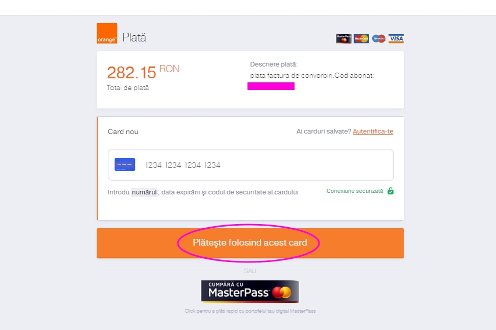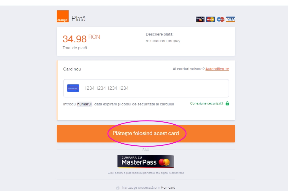 Ezután a nevünket kell megadnunk és már vár minket a lent magányoskodó Plătește gomb.