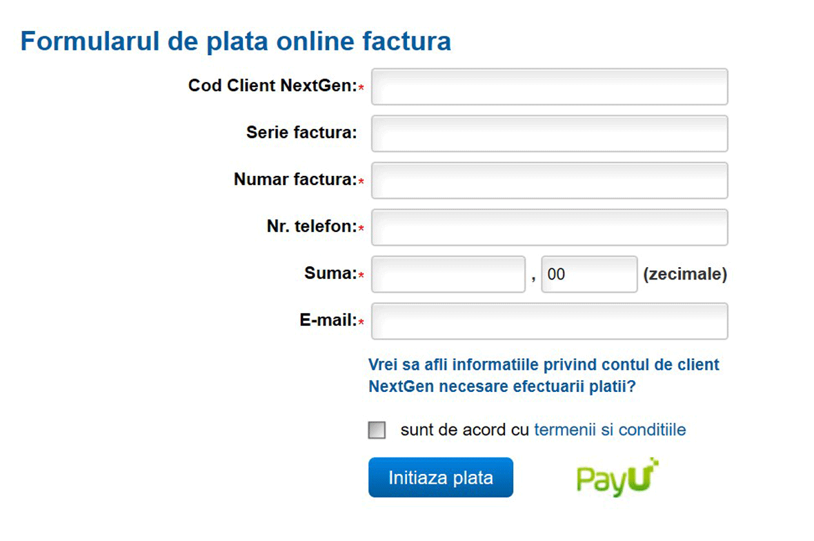 1. Az első kettő az úgynevezett klienskód (Cod client) és a számlaszám (Numar factura) – ezeket a postaládába érkező számlán találod. Kérik még a telefonszámod, a fizetendő összeget (vessző választja el a lejeket a baniktól), és az e-mailcímedet, amire küldik majd a fizetési bizonylatot.
