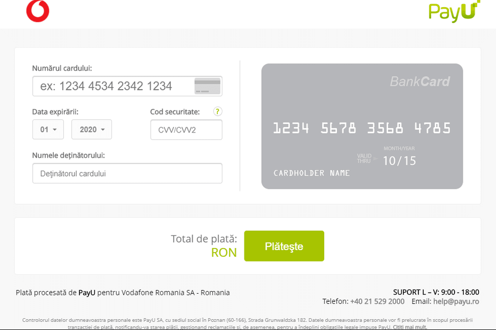 Kattints a zöld Plătește gombra, és már kész is vagy.