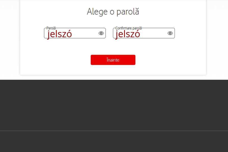 Következőként a telefonszámodat írd be az üres mezőbe, majd találj ki egy jó kis jelszót, és pötyögd be kétszer. A jelszónál mellőzd a szóköz használatát, és figyelj arra, hogy: minimum 8 karakter hosszúságú legyen, tartalmazzon legalább egy kis- és nagybetűt, illetve egy számot.