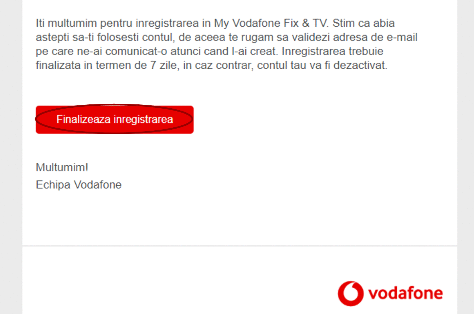Már majdnem kész is vagy a regisztrációval, ha eddig eljutottál, perceken belül küldenek majd egy ímélt a korábban megadott címre. Ha megérkezett, a Finalizeaza inregistrarea gombbal véglegesítheted a regisztrációdat.