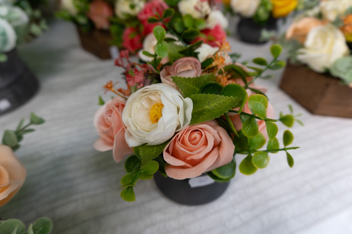 A szappanvirágok titkára voltunk még kíváncsiak, de mint kiderült, bár illatoznak, nem igazi szappanból vannak. Pedig menő lehet egy bokréta virággal fürdeni. Pont fürdeni nem ajánlatos velük, mert a víztől elolvadnak és folyékony, színes masszává válnak. Száraz szépségek, ha nagyon megőriznéd a virágokat a nyárból.