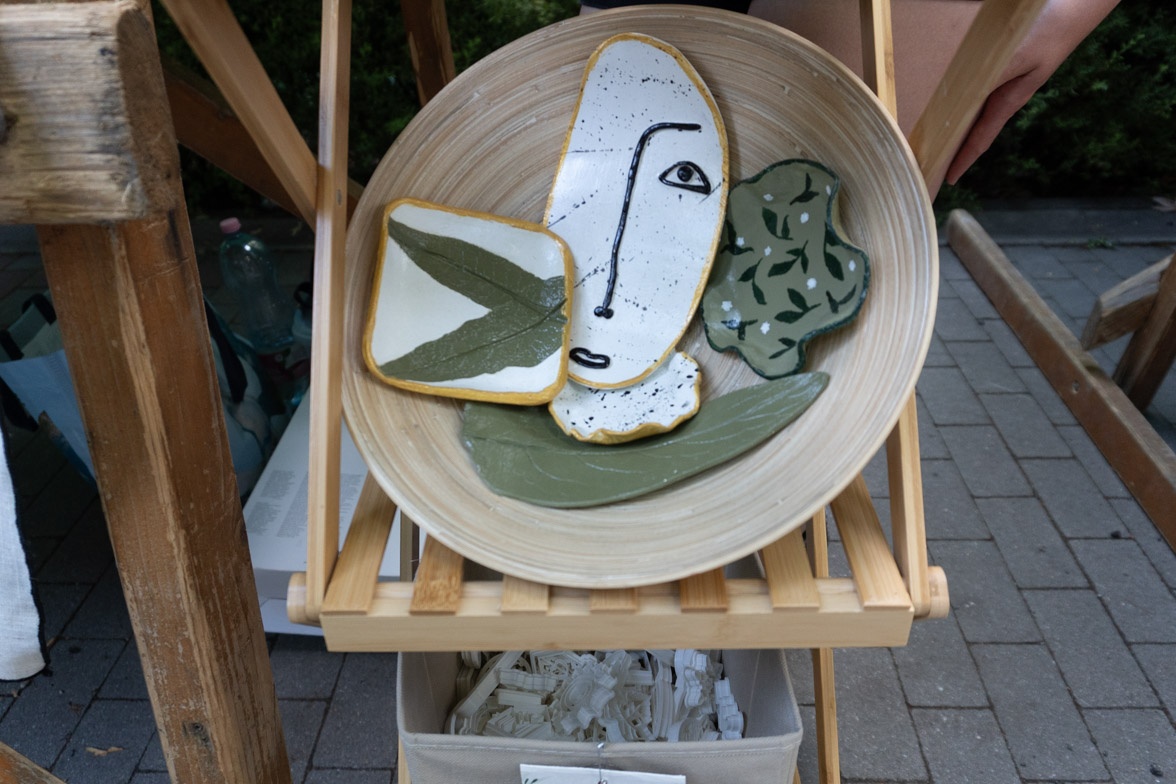 Természetesen nincs vásár Szikszai Ernő kreatív feliratú pólói nélkül, és színes, üvegalkotások, lakberendezési tárgyak is kaphatók még. Itt vannak a helyi kézműveseink, akiket minden hó végén láthatsz, most pótolhatod, ami elveszett, vagy beszerezheted, amire vágysz. Például Verestói Éva mindig izgalmas, változatos kreációiból. De a többiek is jelen, őket is szeretjük, csak az első standoknál még nem álltunk meg.