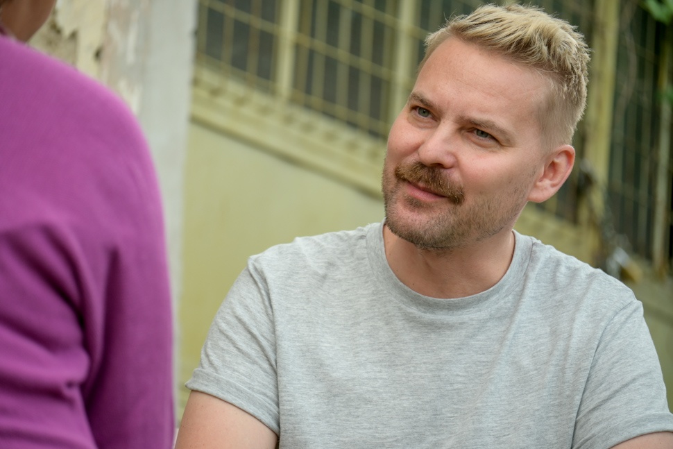 Ráköszönnél, de akkor esik le, hogy a magyar bulvárlapok kattintásvadász címeinek leleplezője, egy éve a Telex.hu főszerkesztője, Német Tamás reggelizik épp a vezérigazgató Pusztay Andrással, és bejön nekik a hely, mert egy hét alatt már repetáztak is. De ez csak később derül ki. Előtte odahív a kollégád, hogy: