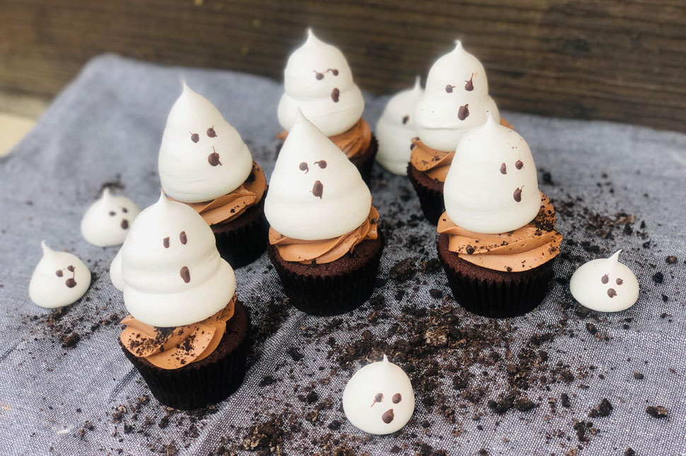 Ha minden elem kész van, jöhet a krém. A mascarponét a mogyorókrémmel elkeverjük, egy habzsákba töltjük, és ízlés szerint a muffinok tetejére nyomjuk. A kis szellemek szemét meg száját olvasztott csokiból megrajzoljuk, majd az elkészült figurákat a krém tetejére ültetjük. Szórhatunk a csokikrémre kis csokis kekszmorzsát is, ettől még halloweenibb lesz.