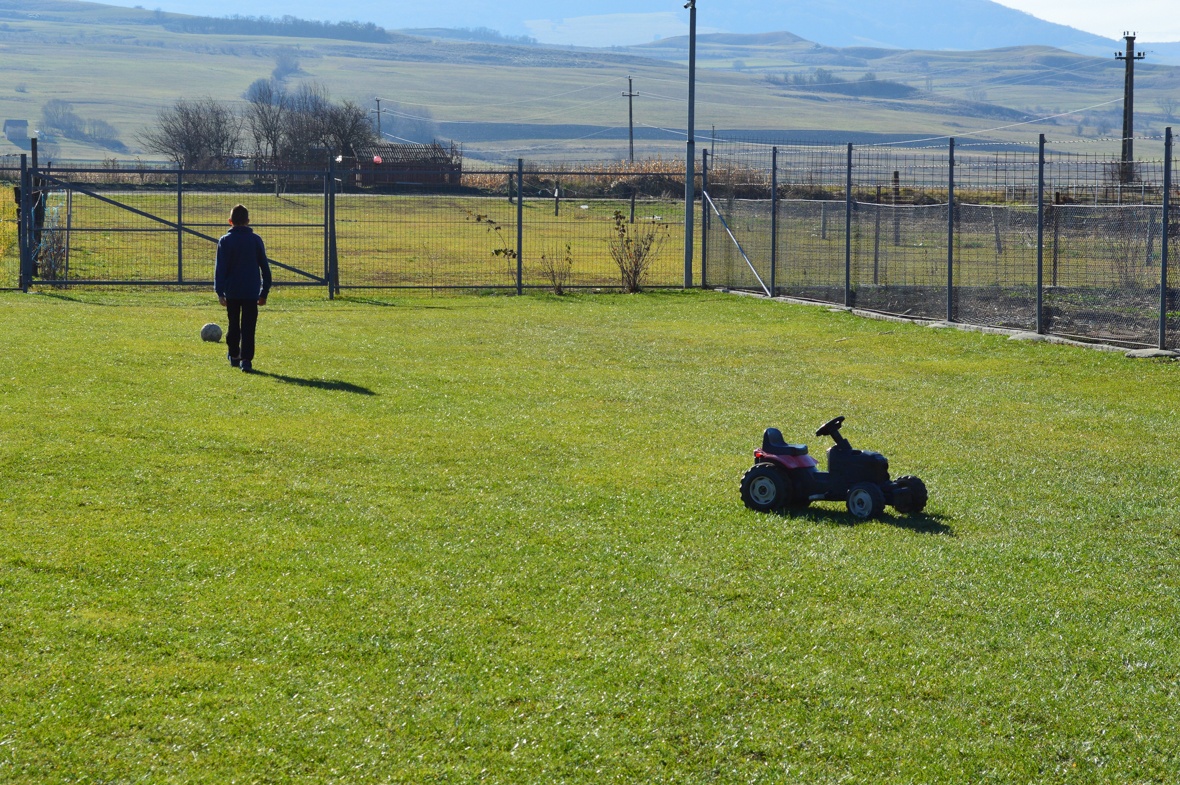 Krisztiánnak ma szerencséje volt, hamarabb végzett, ő már akkor játszott az udvaron, amíg húga anyanyelv órán volt. Követtük, ahogy a kisfiú kiszabadul az udvarra, élvezi a friss levegőt és napsütést, közben „eldicsekedi”, hogy a héten sikeresen betörték a műhely ablakát a focilabdával. Hozzá már nem sokkal az órák után barátok érkeznek, és az idő még csak fél kettőnél jár.