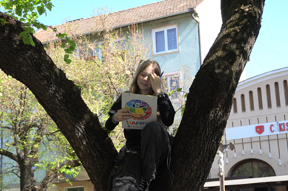 A performansz címe Slambe megyük a világgal, a szövegek a Caritas Youth for Change (Fiatalok a változásért) projektjén belül születtek meg Győrfi Kata költő segítségével. A 13 és 16 éves pedás és bányais diákok az esélyegyenlőségről, szabadságról, feminizmusról írták le a gondolataikat, tudtuk meg Bekő Fóri Zenkő ifjúsági mentortól.