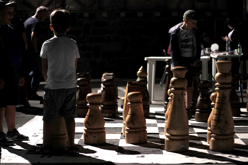 Ezután már-már kimerülve látogattuk meg a lekváros- és zsíroskenyeres asztalkát, majd vásároltunk pár frappét, és megpihentünk. Közben zenélni kezdett a Fortepiano kvartett. Körbepillantava az udvaron feltűnt, hogy a tömeg feloszlott, a kő- és arcfestős standok üresen állnak, az óriási sakkfigurákat sem játékra használják már, egy-egy fiúcska vizsgálgatja, próbálgatja erejét rajtuk csupán.