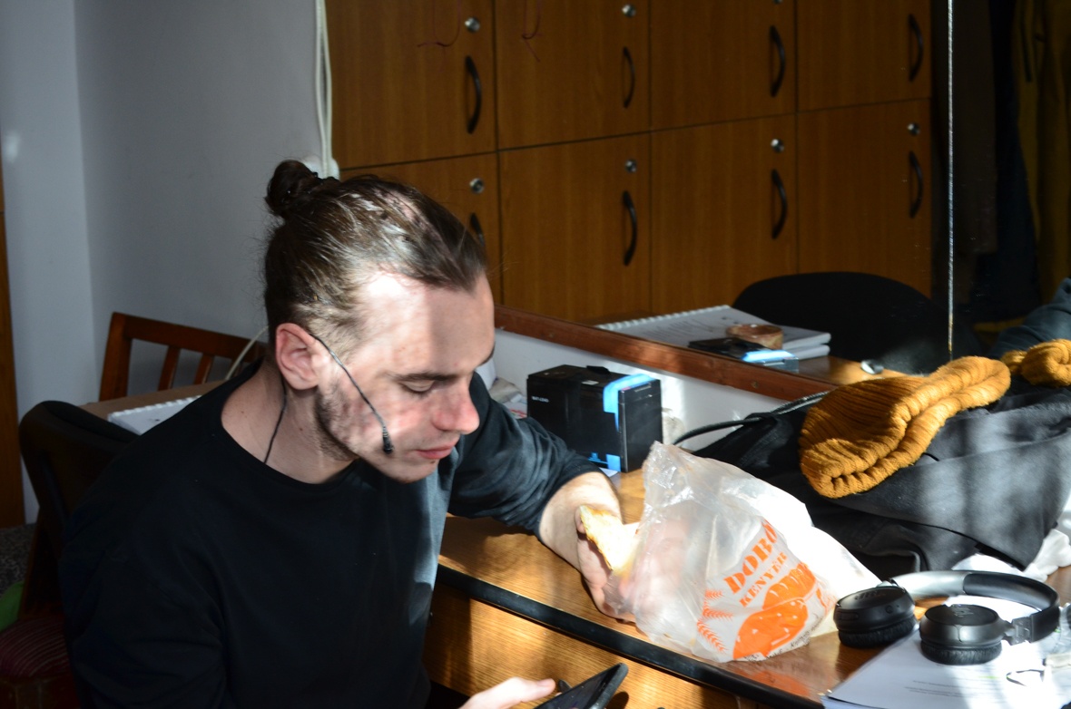 Wagner Áron, a társulat új tagja nem csak péksütiből, hanem a nézőktől kapott energiából is töltekezik, amiből elmondása szerint itt nincs hiány. Mivel nemrég lett hivatásos színész, örül, hogy a járvány ellenére is sokan járnak színházba a városban.
