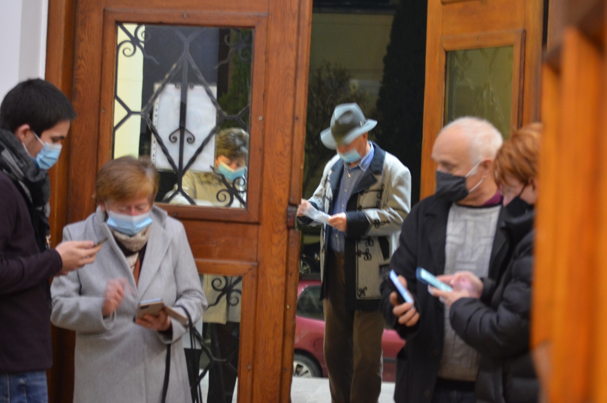 Előadás előtt tizenöt perccel már gyülekezik a közönség. Mindenki az oltási igazolványát keresgéli a telefonjában.