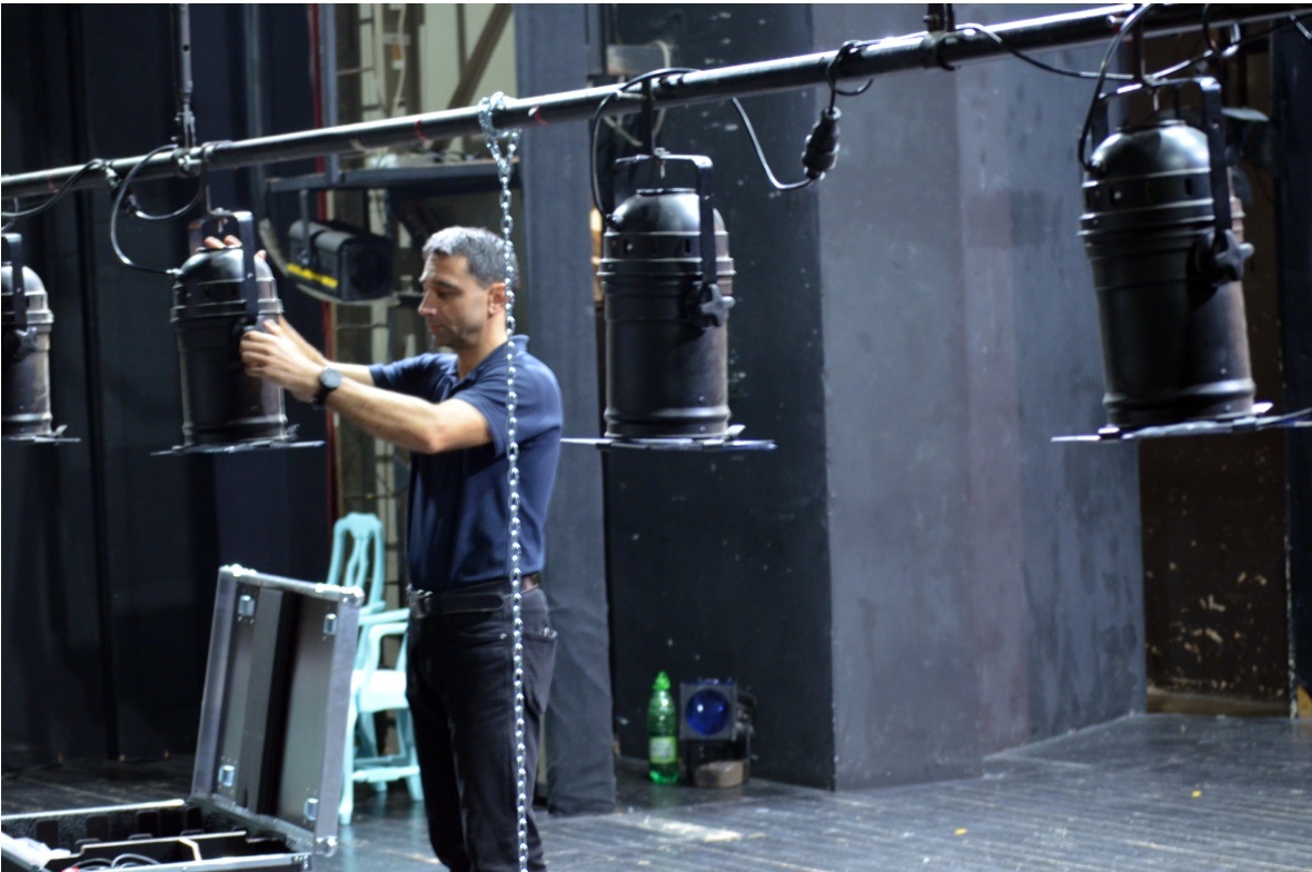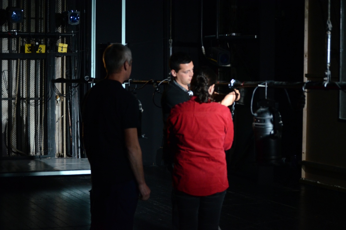 Ahogy belépünk a színházterembe, már javában folyik a háttérmunka. Bár nincsenek a színpad reflektorfényében, Tóásó István és Tordai István fénytechnikusok munkáját nem lehet nem észrevenni: ha valaki belép a színházterembe, és nincsen sötétség, akkor ők egész biztosan bent vannak a színházban. Nélkülük sötétség uralkodna a színpadon.