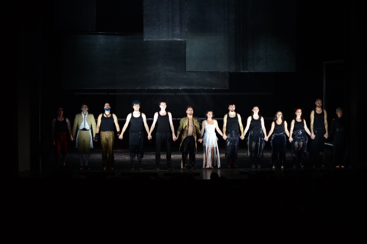 Az előadás véget ér, a színészek felállnak a tapsrendhez és meghajolnak. A közönségnek szemmel láthatóan tetszett az előadás, többször is visszatapsolják a színészeket.