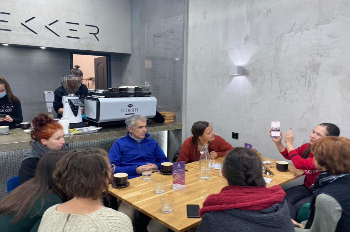 Egy adagot azért még elvitelre is kérnek a társulat fiatal színészei, Sepsi Melinda és Jakab Tamás. Ez a titka annak, hogy ilyen vidáman érkeznek a reggeli próbára. Kezeket fel, kávé és világbéke!