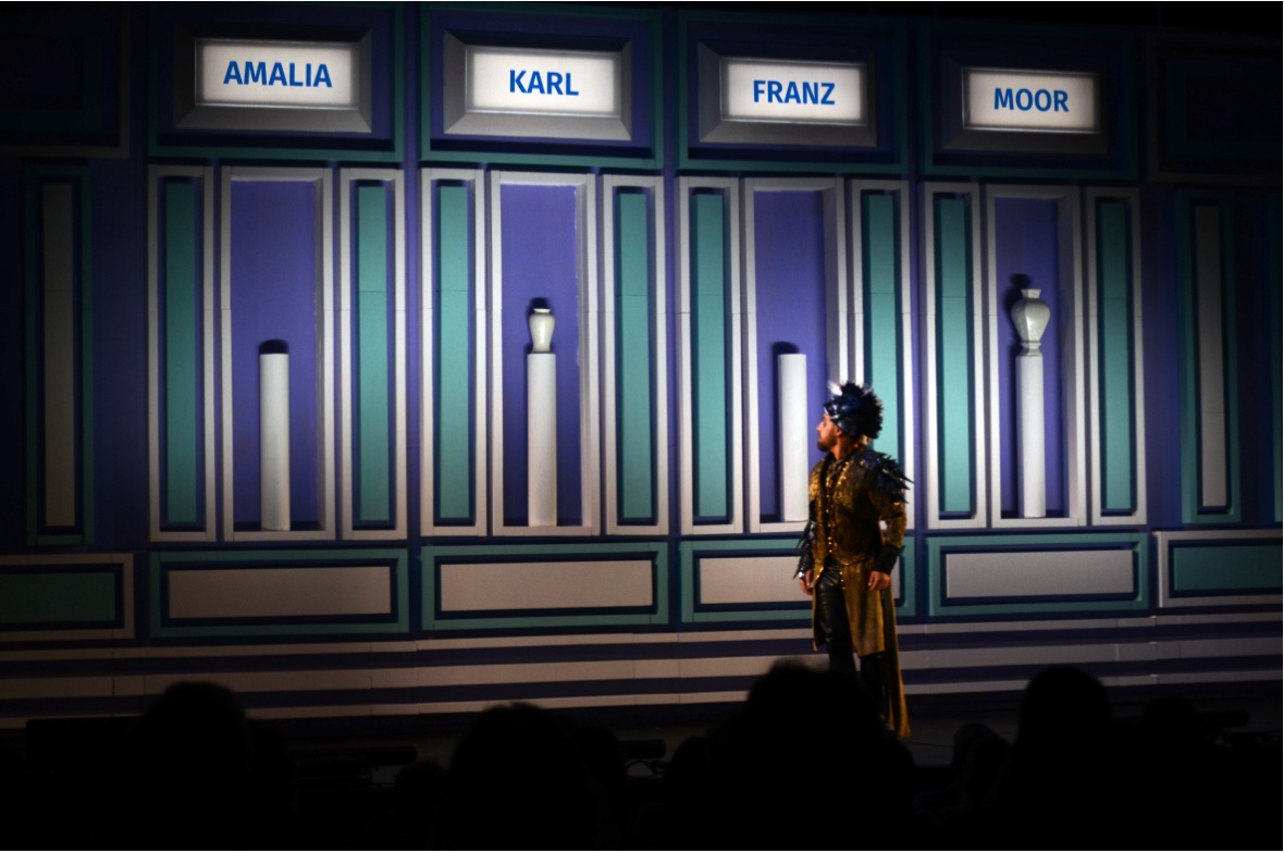 A nézőtér sötét, reflektorfényben négy sírhely. Karl Moor, azaz Barabás Árpád a családi sírnál szembesül azzal, hogy őt és apját, Maximilian Moor-t már eltemették. Testvére, Franz Moor és szerelme, Amelia von Ederlich sírhelye viszont még üres. Ma este bármi megtörténhet…