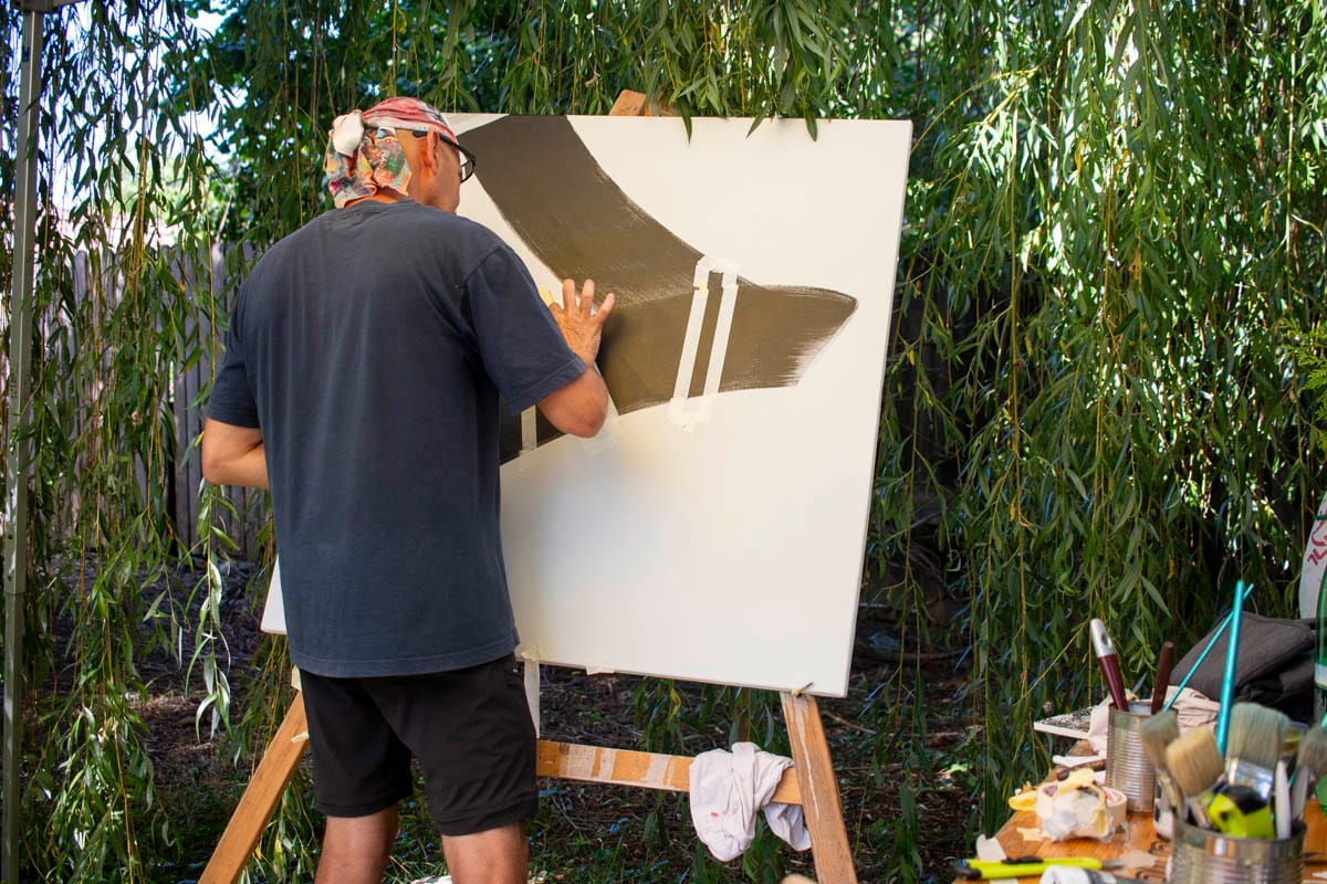 „Ez nem az a fajta festészet, ahol van egy vázlat vagy egy konkrét téma. Inkább folyamat, ami majd valahogy véget ér” – mondja. Bár a munkák nem konkrét helyi inspirációból születnek, a jelenlét, a véletlenek, az elcsípett pillanatok, belső rezdülések így is beépülnek a képbe.