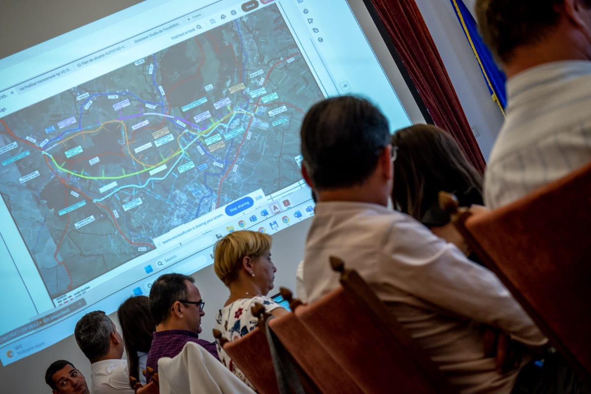 A kolozsvári tervezőcég képviselője, Violeta Rus online, kicsit nehézkesen kapcsolódott be az ülésbe, majd miután sikerült a prezentációját is megjelenítenie az emailfiókja helyett, részletesen mutatta be a négy nyomvonal paramétereit, gazdasági és technikai jellemzőit.