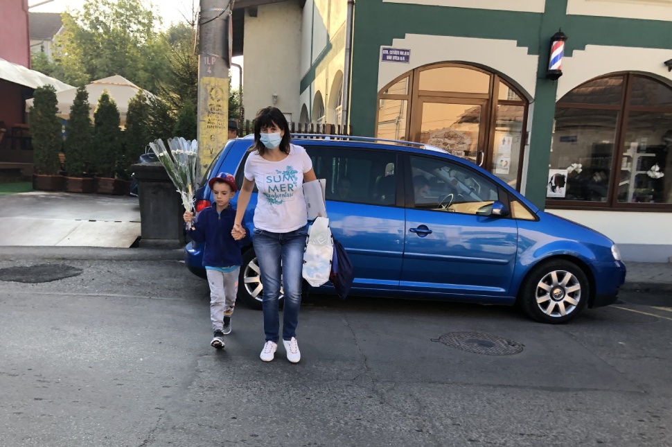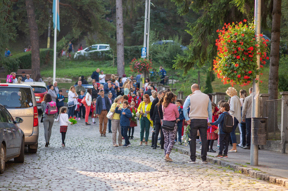 8.30-kor még meglepően friss a levegő Udvarhelyen. Ahhoz képest, hogy ma van a tanév első napja, az autók is szellősen haladnak. Jó lenne, ha máskor is félórás különbségekkel kezdődne a tanítás.