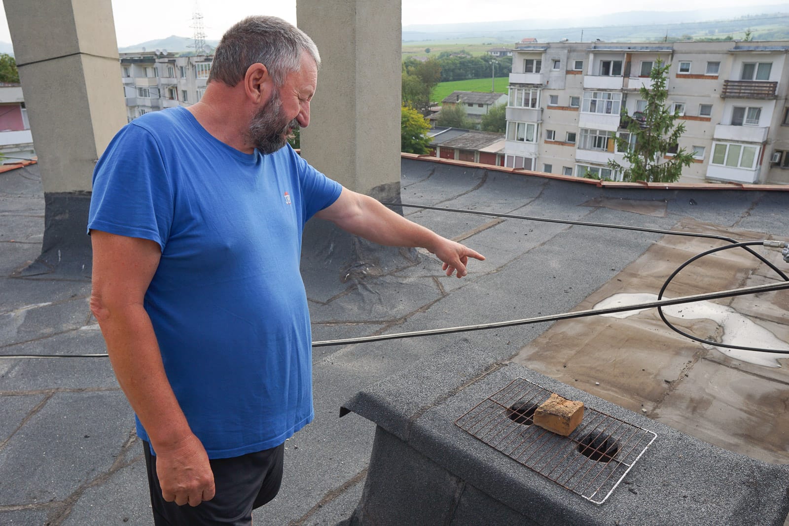 Szabó Zoltán, a blokkfelelős elmondja, hogy elvileg befejezték náluk a munkát, de kellett volna legyen egy javítás, mert egy részen nem ragadt oda a szigetelő, és egy vihar felszedte. Hívták a vállalkozót, ígérte, hogy jön, de nem jött. Aztán a szomszéddal ketten ragasztották vissza a kátránylapot, mert nem akartak várni, hogy nehogy beázzon.