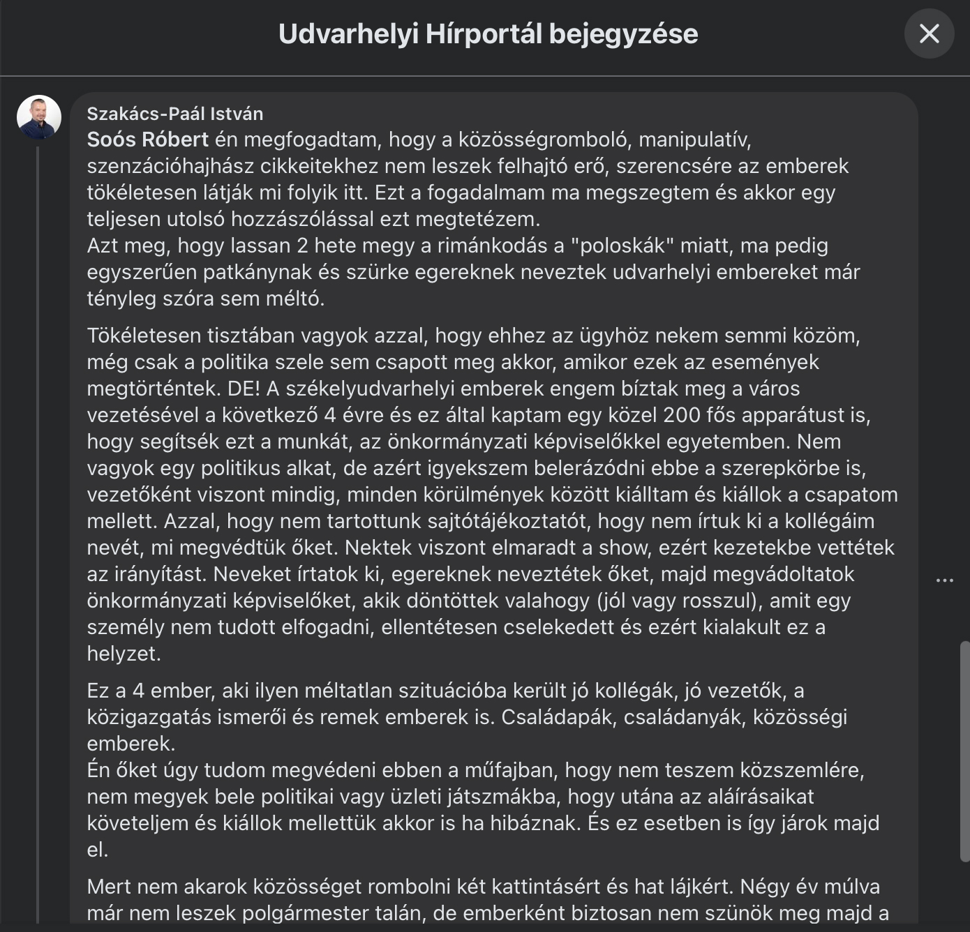 De valószínű akkor már túl sok volt benned a dűh, és túl nagy a fájdalom, hogy ezt észrevedd, és élj a felkínált lehetőséggel. Ehelyett inkább elkezdted minősíteni az uh.ro-t, hogy közösségromboló, manipulatív és szenzációhajhász. És a végén megjegyezted, hogy szerencsére az emberek tökéletesen látják mi folyik itt.