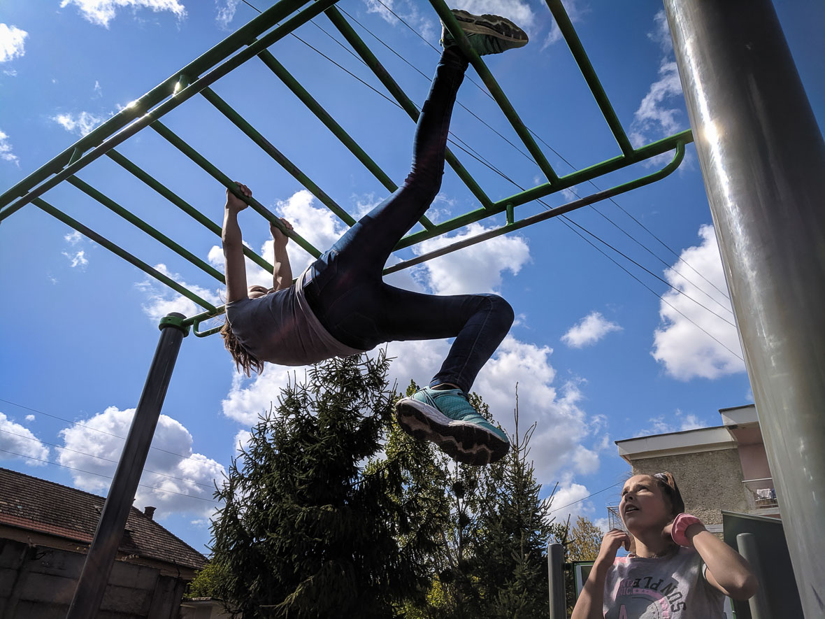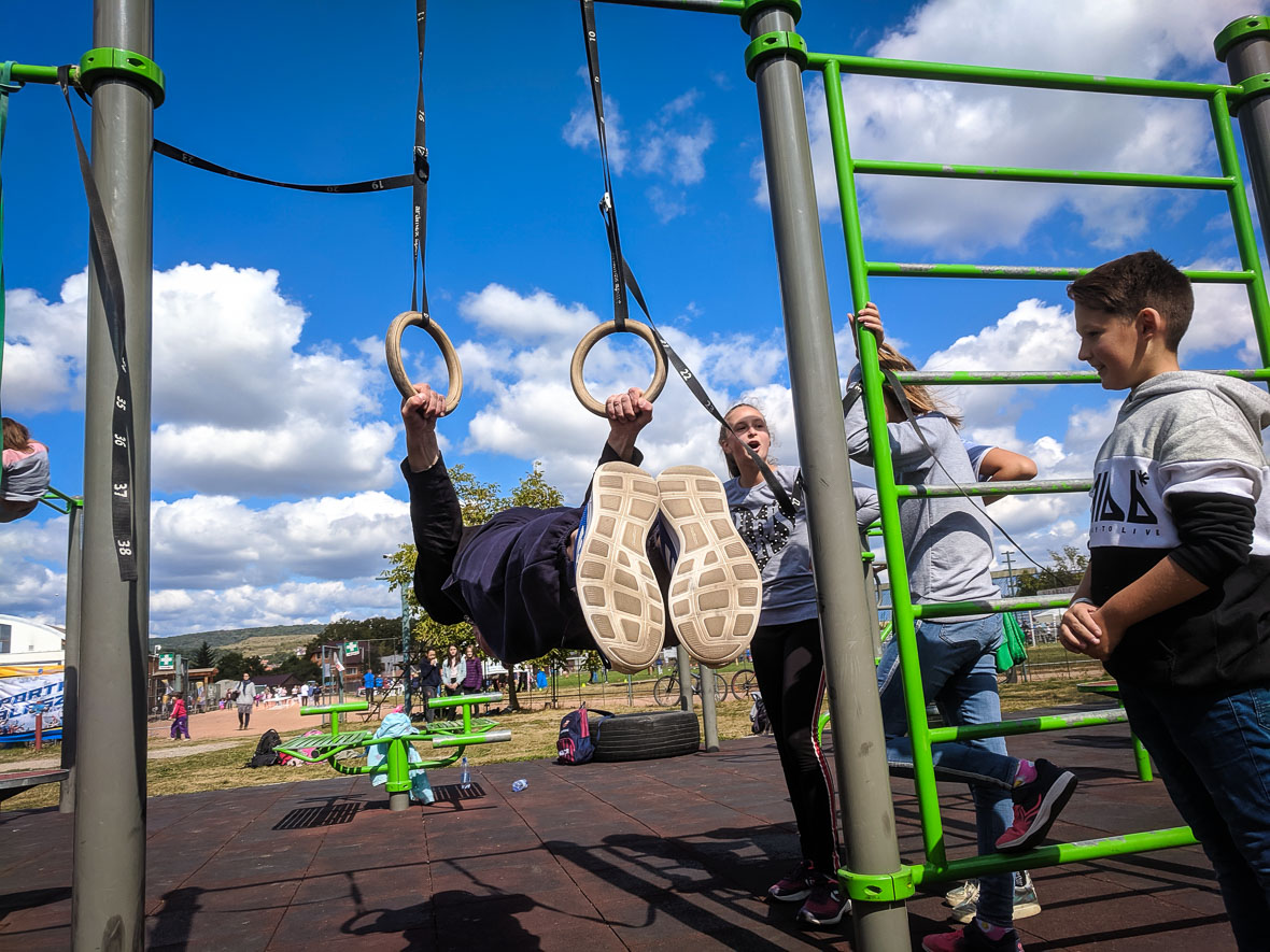 Persze, több lehetőség is van a városban, hogy a gyerekek saját testsúlyos edzésgyakorlatokat végezzenek, de mivel fontos, hogy ezeket helyesen csinálják, jó, ha felkeresnek egy tapasztalt gyakorlatozót. Ezért volt az eseményen Szakács Péter is, a BarSmashers tagja. Ő mutatott néhány gyakorlatot, amiktől le is esett a legkisebbek álla.