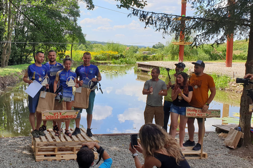 „Szombat reggel 6 órakor rajtoltunk el Szovátáról, kezünkben a pénteki eligazításon kapott térképpel, hisz a kalandverseny lényege, hogy nem kijelölt pályán zajlik, a csapatok térkép, valamint iránytű segítségével tájékozódnak a természetben. Egy közel 40 kilométeres szakasz várt ránk, amit szaladva tettünk meg keresztezve a Kis-Küküllőt, a végén a bözödi víztározóhoz érkeztünk. Itt minden csapat megépítette a maga tutaját, amivel átevezett a víztározó 3,5 kilométeres hosszán, és egy gyors átöltözés után jöhetett az 50 kilométeres bic„iklis szakasz" – számol be a versenyről Imre Judit.