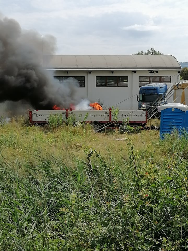 Egy, a cirkusz közelében lévő lakókocsi kapott lángokra.
