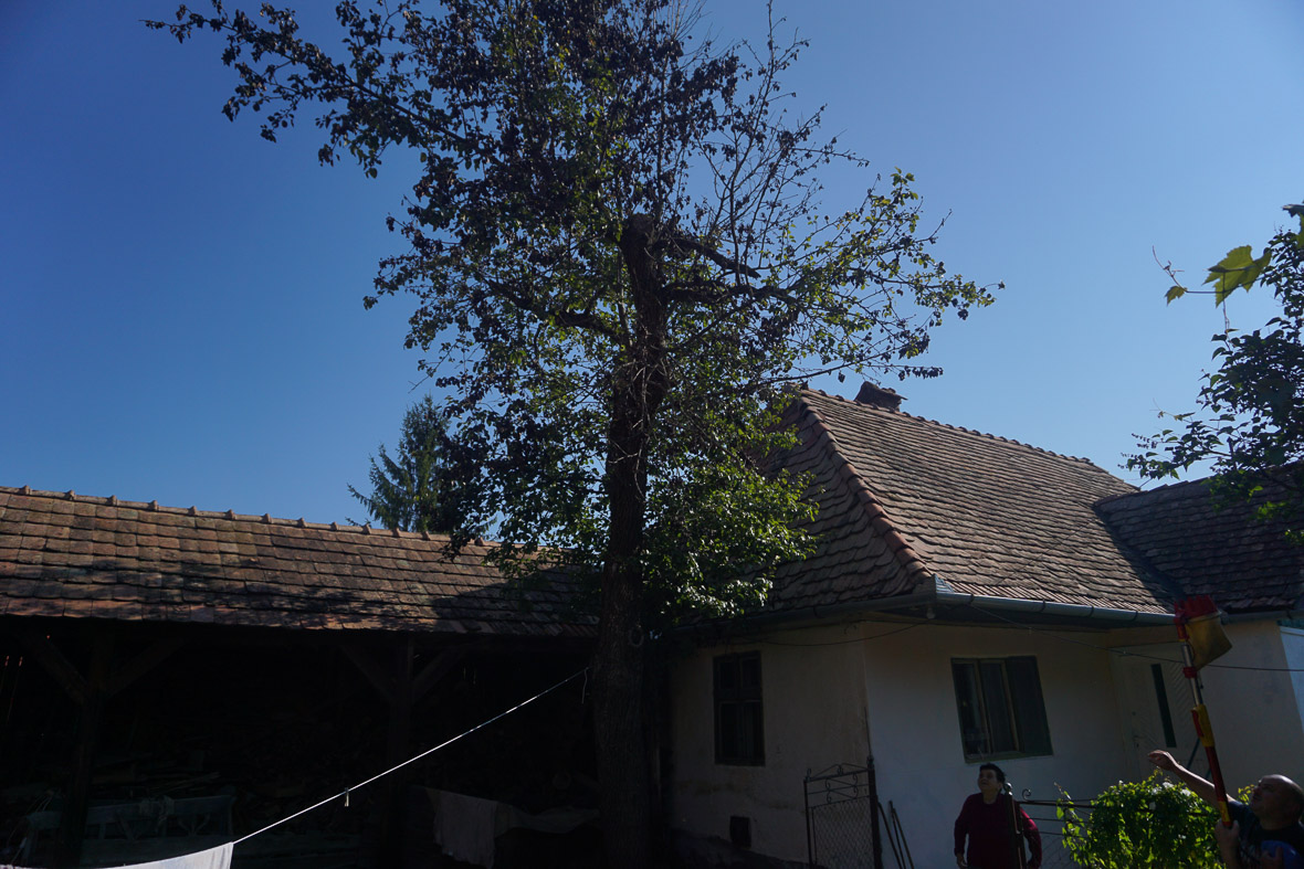 Tóásó, az igazi, a szomszédjába irányít, Dobai Juliához, mert úgy emlékszik, hogy ott van egy vackorfa, ami túlélte a nehéz időket. Így is van, itt egy Bakbűz vackor, az egyetlen Bakbűz, amit a faluban találtunk. Sajnos, erősen rossz állapotban van. Domokos, a Júlia néni fia, tavasszal levágta a fáról a száraz ágakat, de azóta ismét elszáradt a fél fa. Kérdés, hogy túléli-e a támadást.