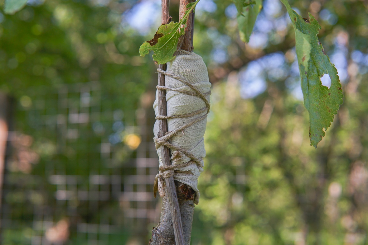 Domokos második osztályos korában tanulta az oltást nagyapjától. Akkor még agyaggal, újságpapírral oltottak. Ma is olt, idén is megpróbált néhány régi, ritka szilvafajtát átoltani, látható sikerrel.
