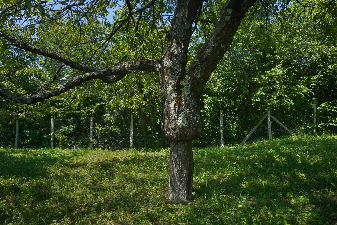 A fenti képen egy olyan fa, ami nagyon szépen ábrázolja, milyen, mikor a nemes rávastagszik az alanyra az oltási pontban. Ez akkor következik be, ha a nemes erősebb növekedésű fajta, mint a vad, amire oltották. Nagyobb a növekedési erélye, így mondják szakszerűen.