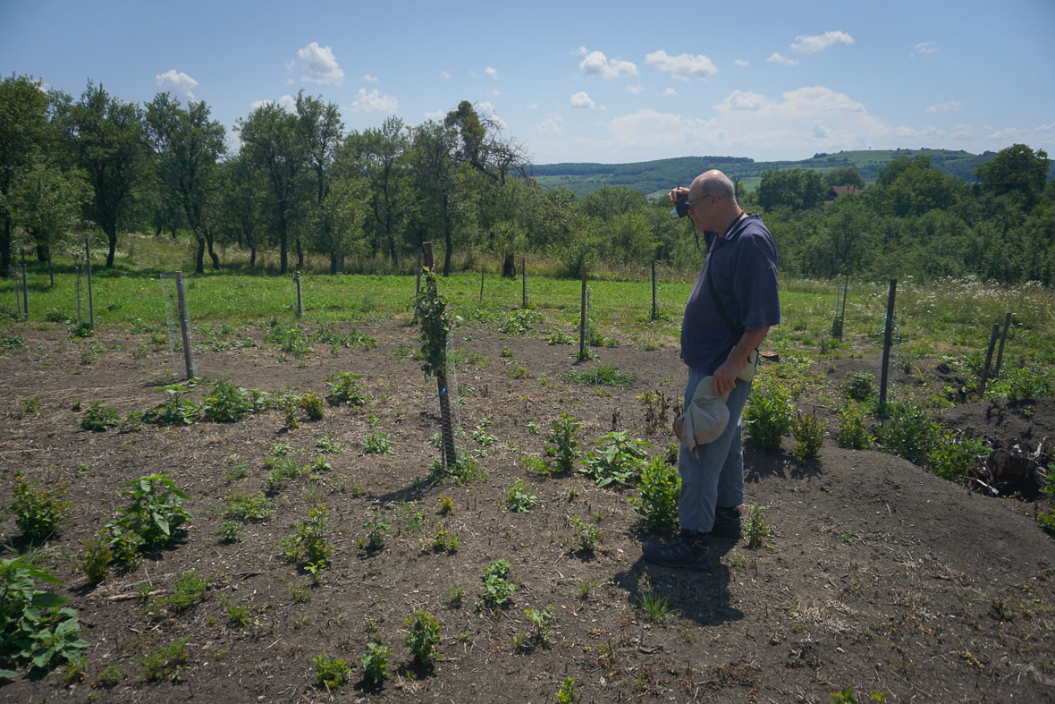 Ebédszünet következik. Igaz, hogy már jócskán délután van, de legalább éhesek vagyunk, és jó étvággyal tudunk falatozni. Bevonulunk egy faluszéli kertbe, és kiterítjük a piknikpokrócot. Zsoltot megragadja a kert régi fáinak szépsége, és nem bírja ki, hogy ne mérje meg átmérőjüket.