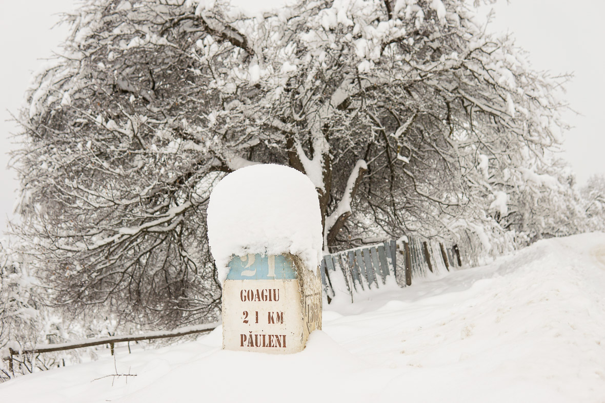 Az út valamennyire le van nyomva, de parkolni nem nagyon van ahol, ha nem akarod teljesen lezárni egy fél napra a megyei utat. Zsolt barátom magyarországi, nincs teljesen szokva az itteni viszonyokhoz, ezért egy kicsit kiszélesíti az utat parkolás céljából. Aki nem ismeri Zsoltot, a malomfalvi kerítések átugrásának docensét, olvassa el tavalyi anyagunkat Nagy Józsi körözéséről.