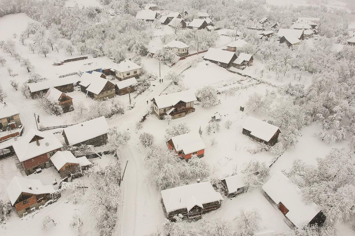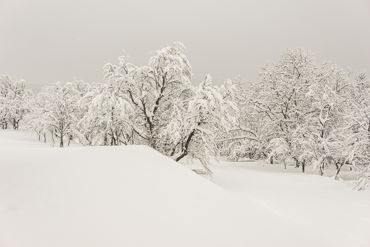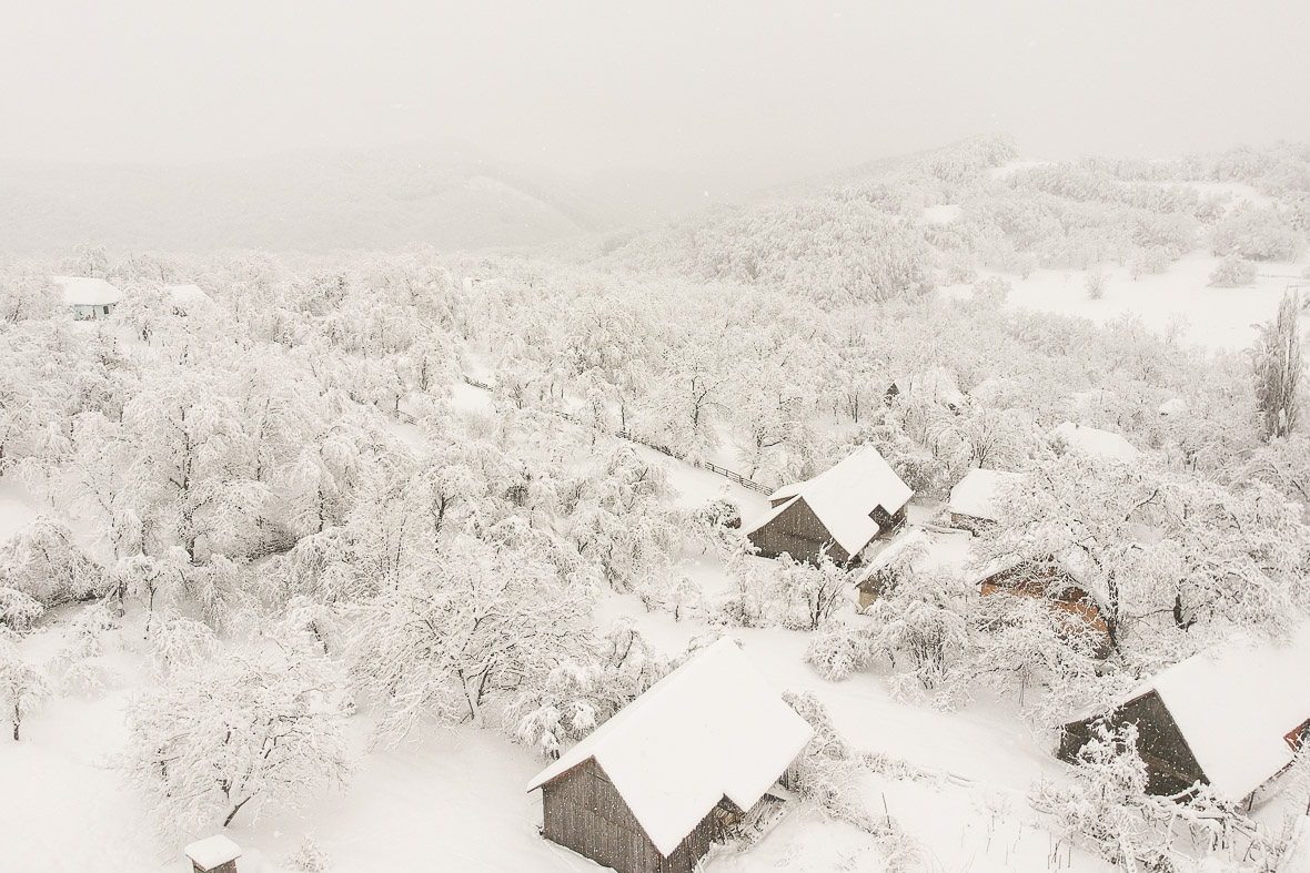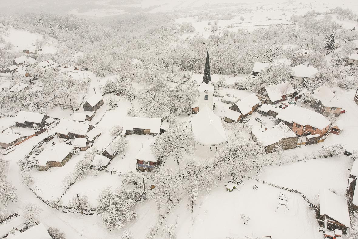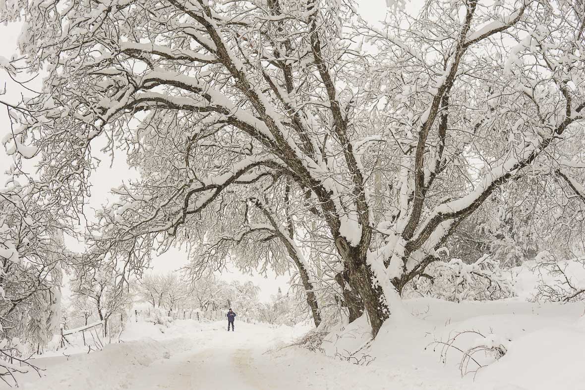 Pálfalván megállunk még egy pillanatra, gyönyörködni a szép útmenti diófákban és a hó terhe alatt görnyedező fenyőkben.