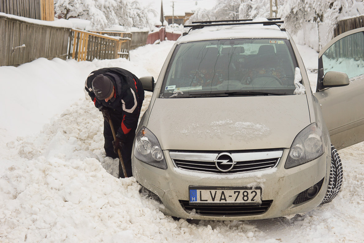 Nem telik bele két perc, hogy elkezdtük lapátolni a havat, máris megjelenik egy helybéli, aki egy lapátot akar nekünk eladni. Ez aztán az üzleti érzék, tesó!