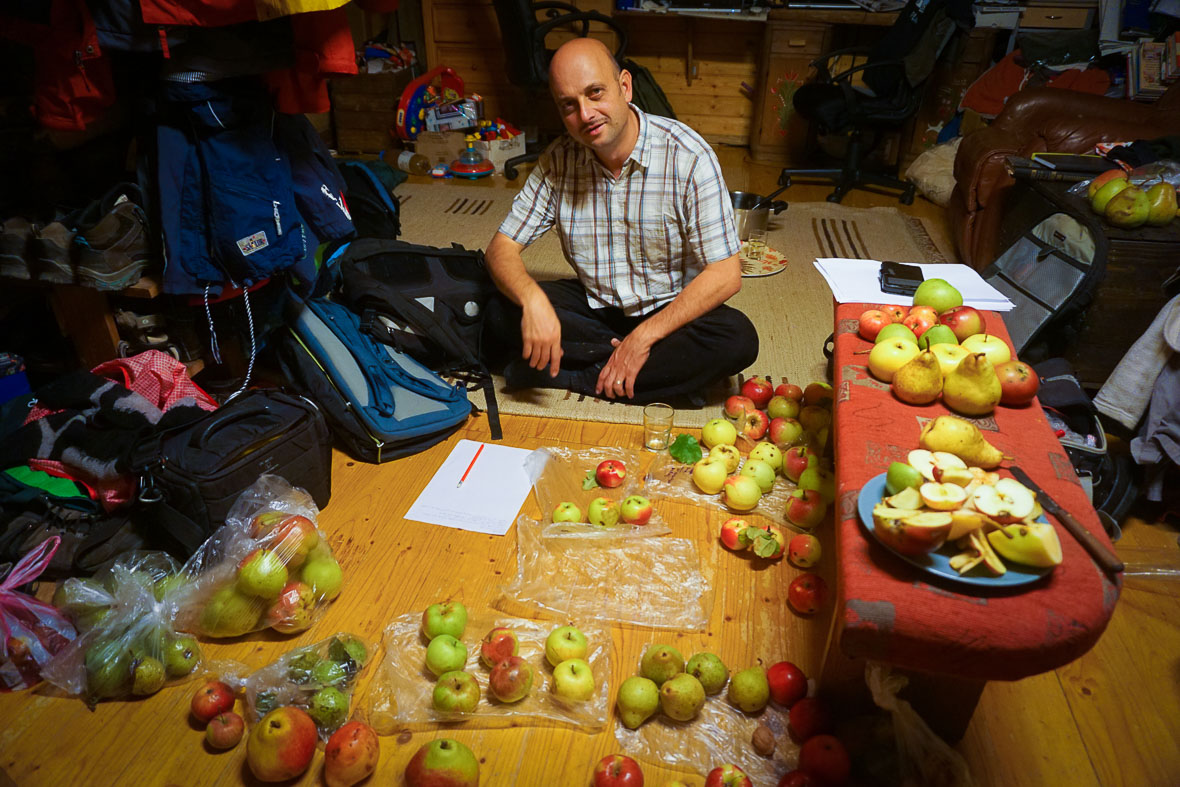 Zsolt és a kétnapi gyümölcstermés egy késő éjszakába nyúló fotózáson.