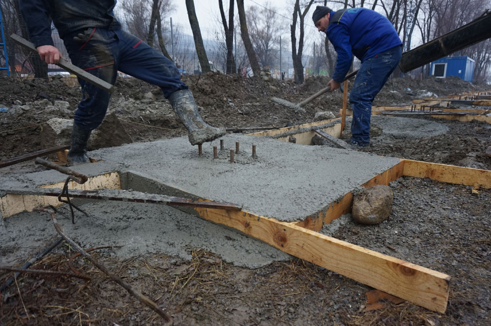 Esőben locsolják a régit és betonozzák az újat. Picit csúszik a jégpálya megnyitója.